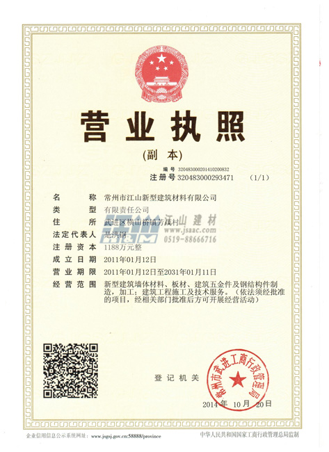 2015年豎版營業執照