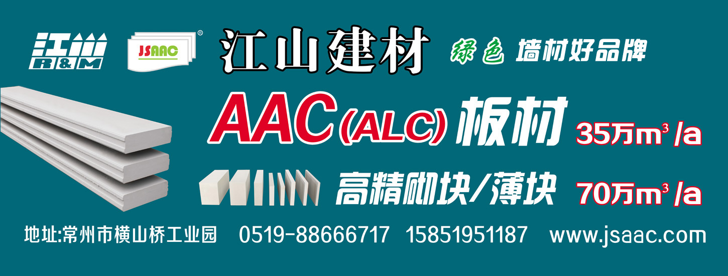 常州市江山新型建筑材料有限公司是江蘇地區AAC(蒸壓砂加氣混凝土)砌塊、板材集研發、生產、銷售為一體的規模性企業。地處長三角經濟帶樞紐—常州市經濟開發區,距離G42高速出口僅 3公里,交通便利,物流發達。公司占地13.5萬平方米,現有員工300多人,其中研發技術人員占比35%,為我們產品的生產研發提供堅實的保障。公司更配備有專業的銷售、售后及運輸團隊,致力于為客戶提供^優質的服務。公司分兩期總投資3億元人民幣,一期二期已形成80萬方蒸壓砂加氣混凝土砌塊及35萬方蒸壓砂加氣混凝土板材的年產能。